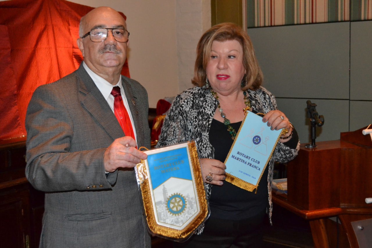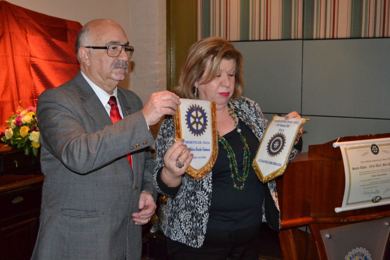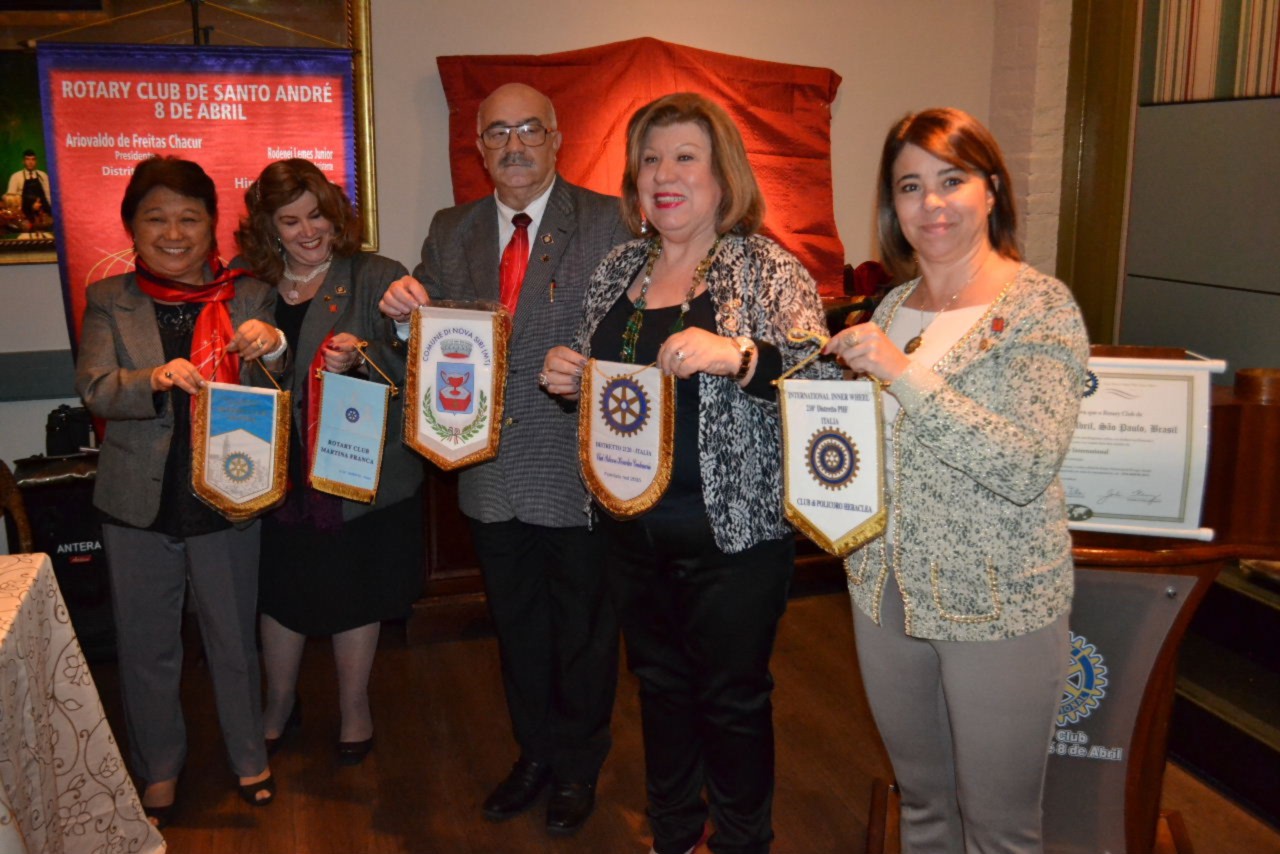 Durante a reunião, o presidente Ari Chacur recebeu flâmulas de clubes do exterior, trazidas pela companheira Ana Stoppa, que esteve recentemente na Itália, onde aproveitou a oportunidade para conhecer clubes de Rotary e estabelecer novas parcerias rotárias.
