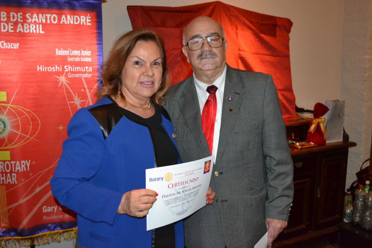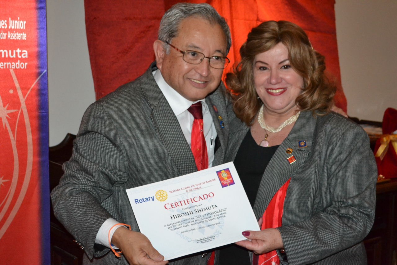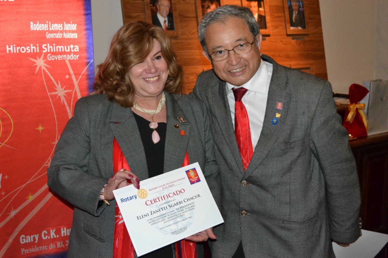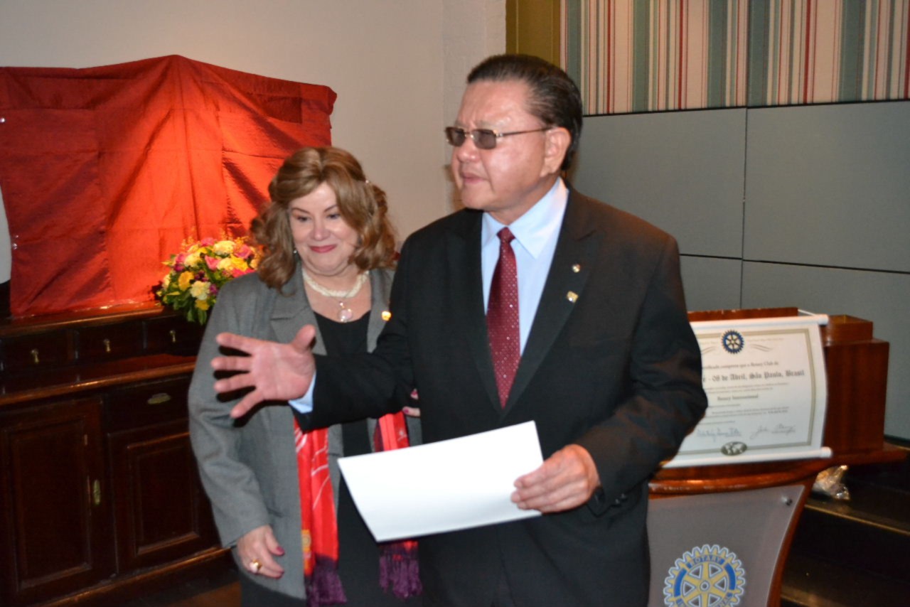 O presidente brilhante fez a outorga de certificados aos sócios Honorários Oswaldo Kazumi Takata e ao governador Hiroshi Shimuta, ambos sempre muito comprometidos com as causas rotárias e atuantes nos clubes do Distrito.