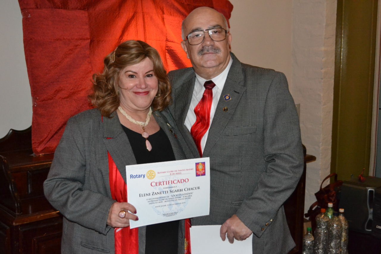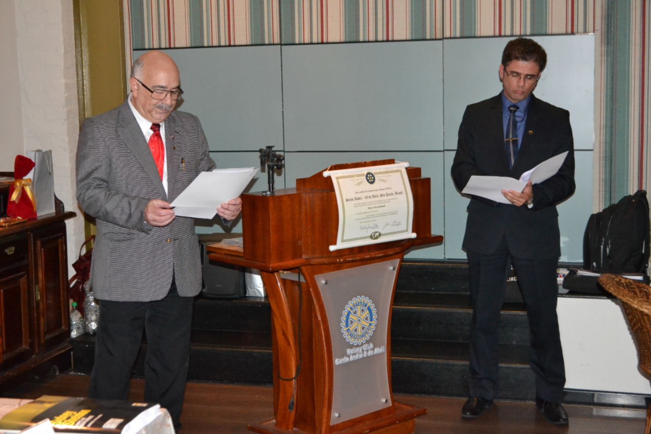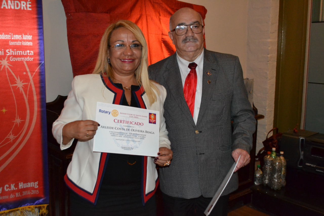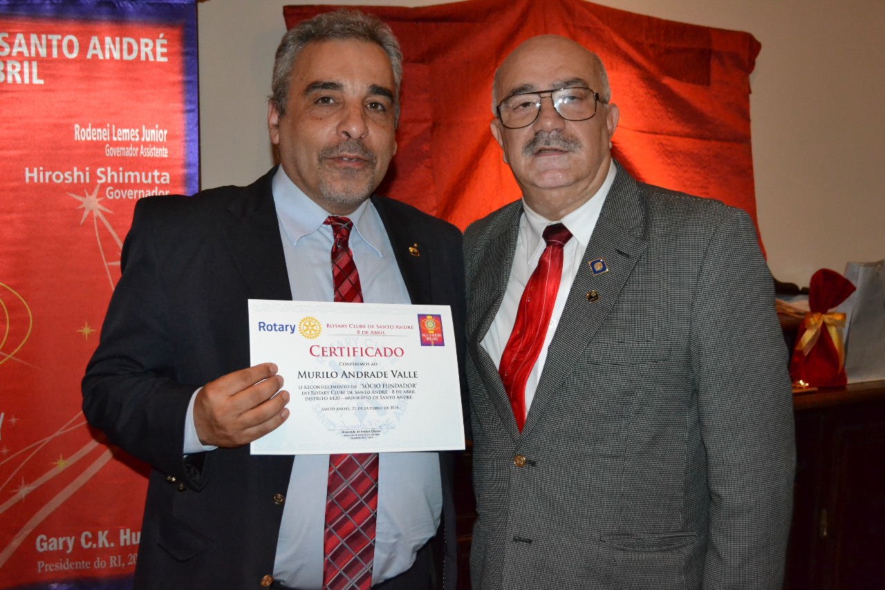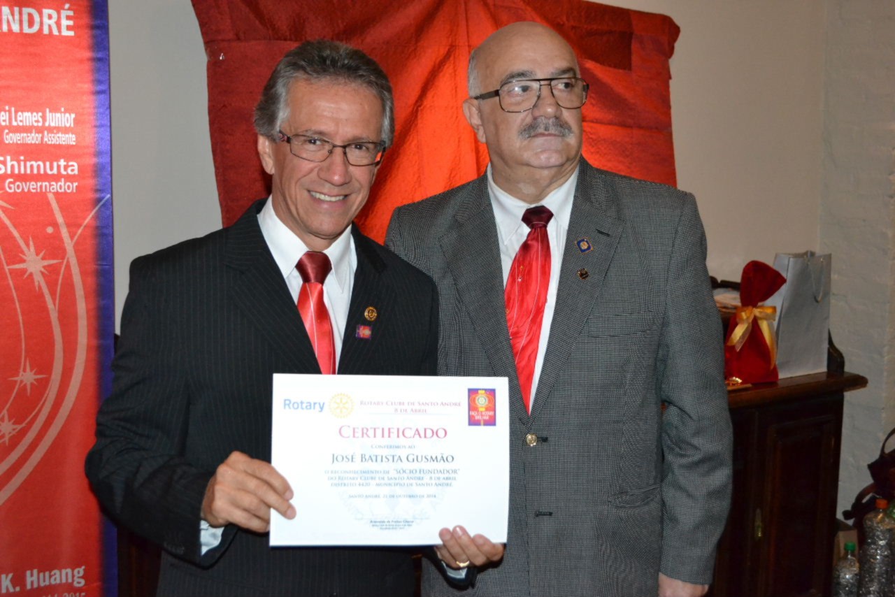 O presidente brilhante fez a outorga de certificados aos sócios Honorários Oswaldo Kazumi Takata e ao governador Hiroshi Shimuta, ambos sempre muito comprometidos com as causas rotárias e atuantes nos clubes do Distrito.