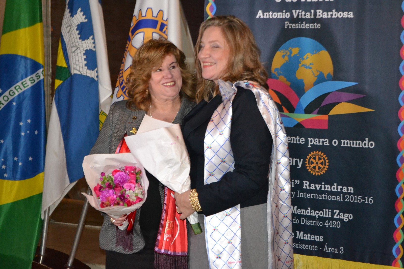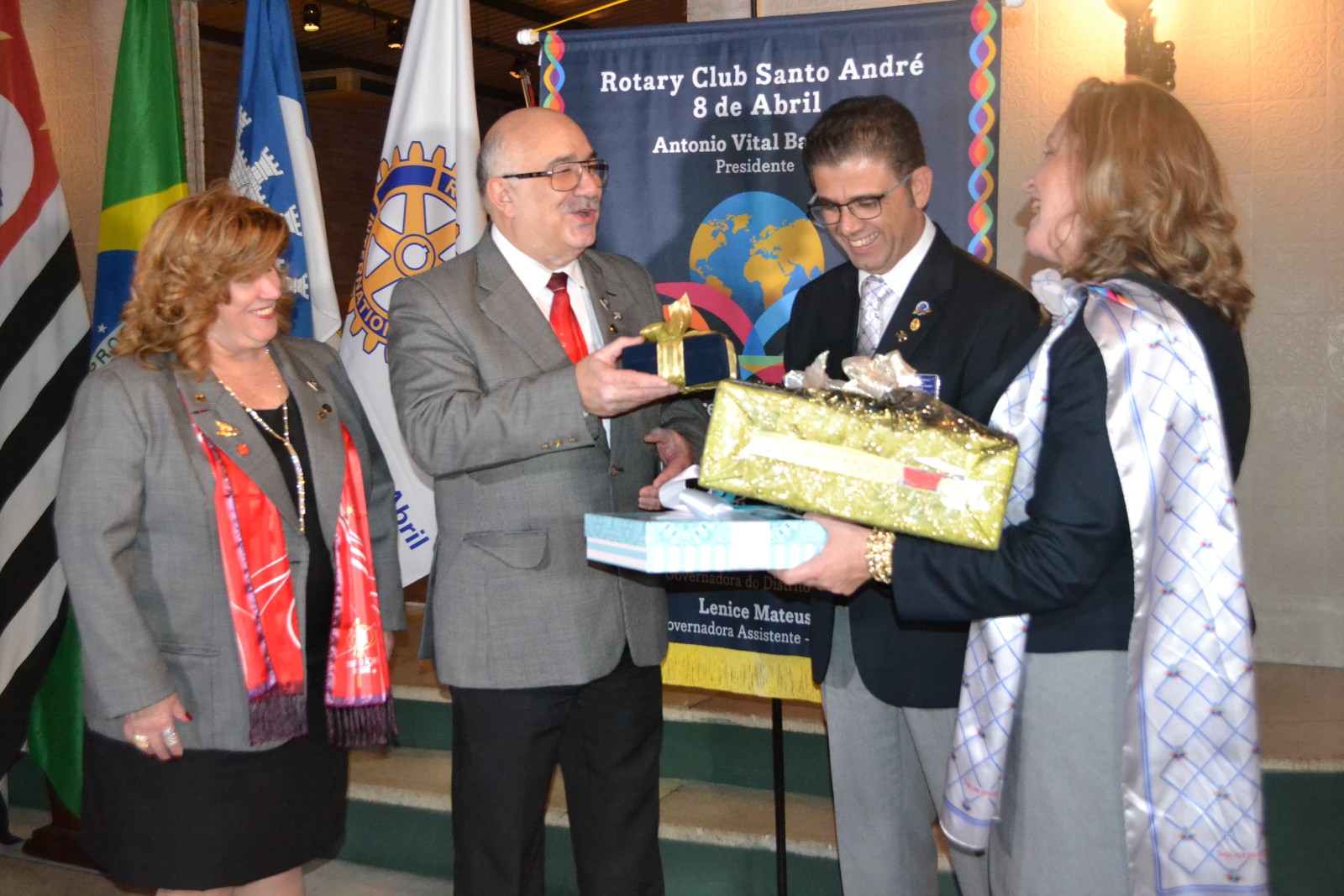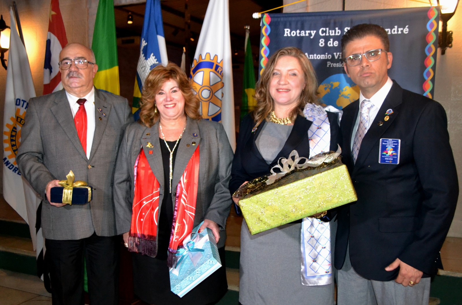 A presidente brilhante Rosimeire Souza, empossou o casal presidente presente Rosane Santos Muraro e Frederico, ambos comprometidos com o ideal de servir junto aos demais companheiros do RC Santo André Sul.
